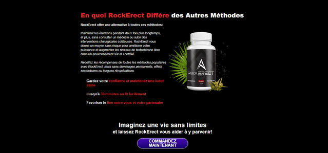 Rockerect est une sorte de solution naturelle d’amélioration masculine qui a été spécialement formulée pour répondre aux besoins sexuels et les désirs des hommes qui ont une vie sexuelle difficile avec leurs partenaires. C’est juste une solution parfaite pour éliminer tous vos problèmes sexuels possibles et peut facilement vous rendre en mesure de mieux performer afin de créer de nombreux souvenirs avec votre partenaire aimant. Vous pouvez maintenant profiter de vos meilleurs moments avec votre partenaire en ajoutant ce Rockerect à votre routine quotidienne.